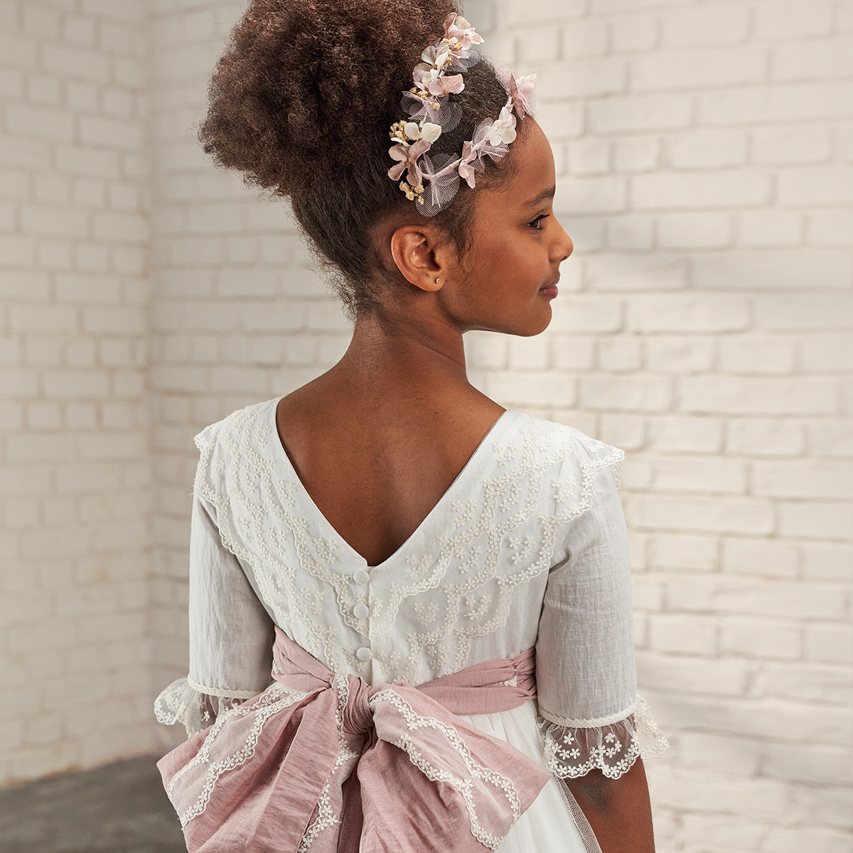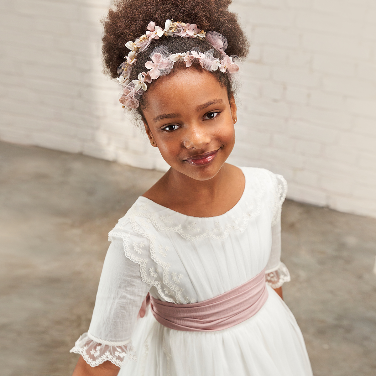 Ceremony or communion crown on a flexible base to adapt to the hairstyle, style and personality of each girl.