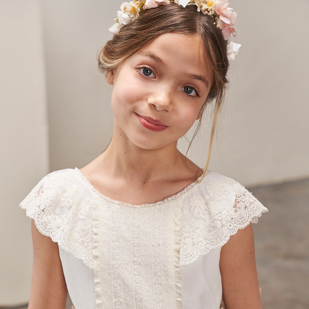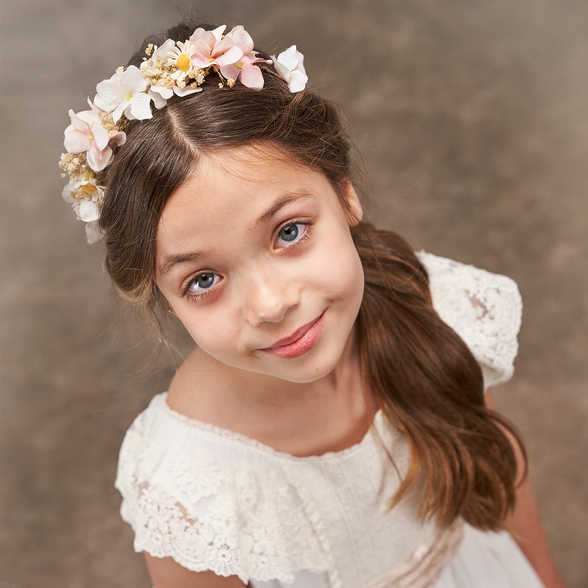 Crown for communion or ceremony made with artisan techniques and hand-painted flowers on a flexible base very easy to adapt to your size. An ideal accessory to give a romantic touch to your total look.