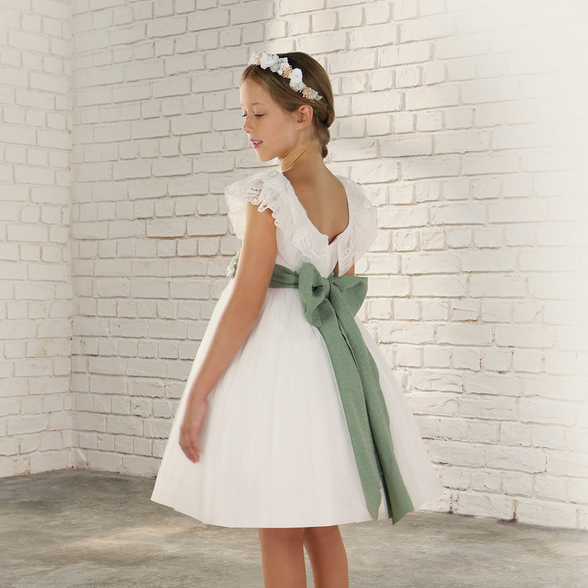 Spring-like lightness and naturalness in movement. Perfect for a communion with freshness.